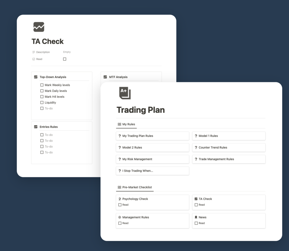 Elevate your trading strategy with our Free Notion Trading Plan Template. Designed for traders of all levels, this template helps you organize and execute your trading plans with precision and discipline.